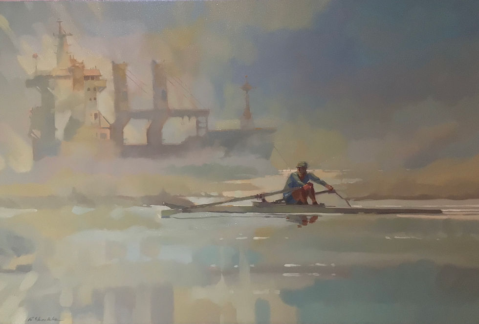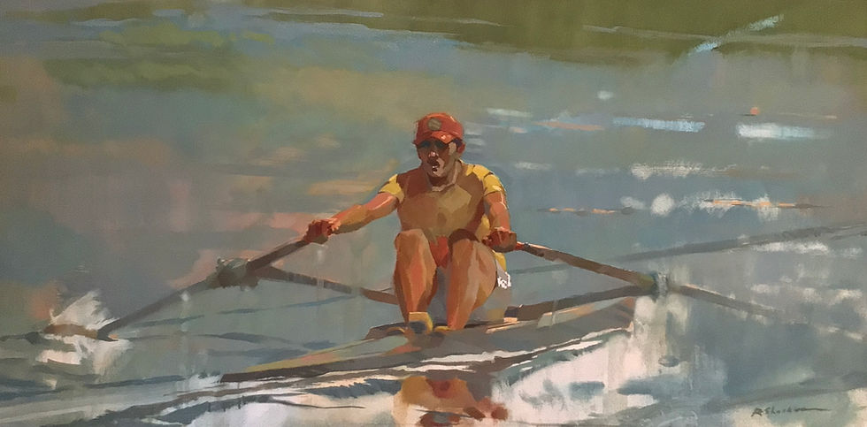 This collection of large rowing works captures the essence of rowing on a tranquil morning or in chop reflecting 40 years of experience in the sport.